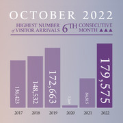 Throughout 2022, visitors have steadily increased month on month, and the latest October figures exceeded pre-pandemic numbers by nearly a third (32% more than October 2017).